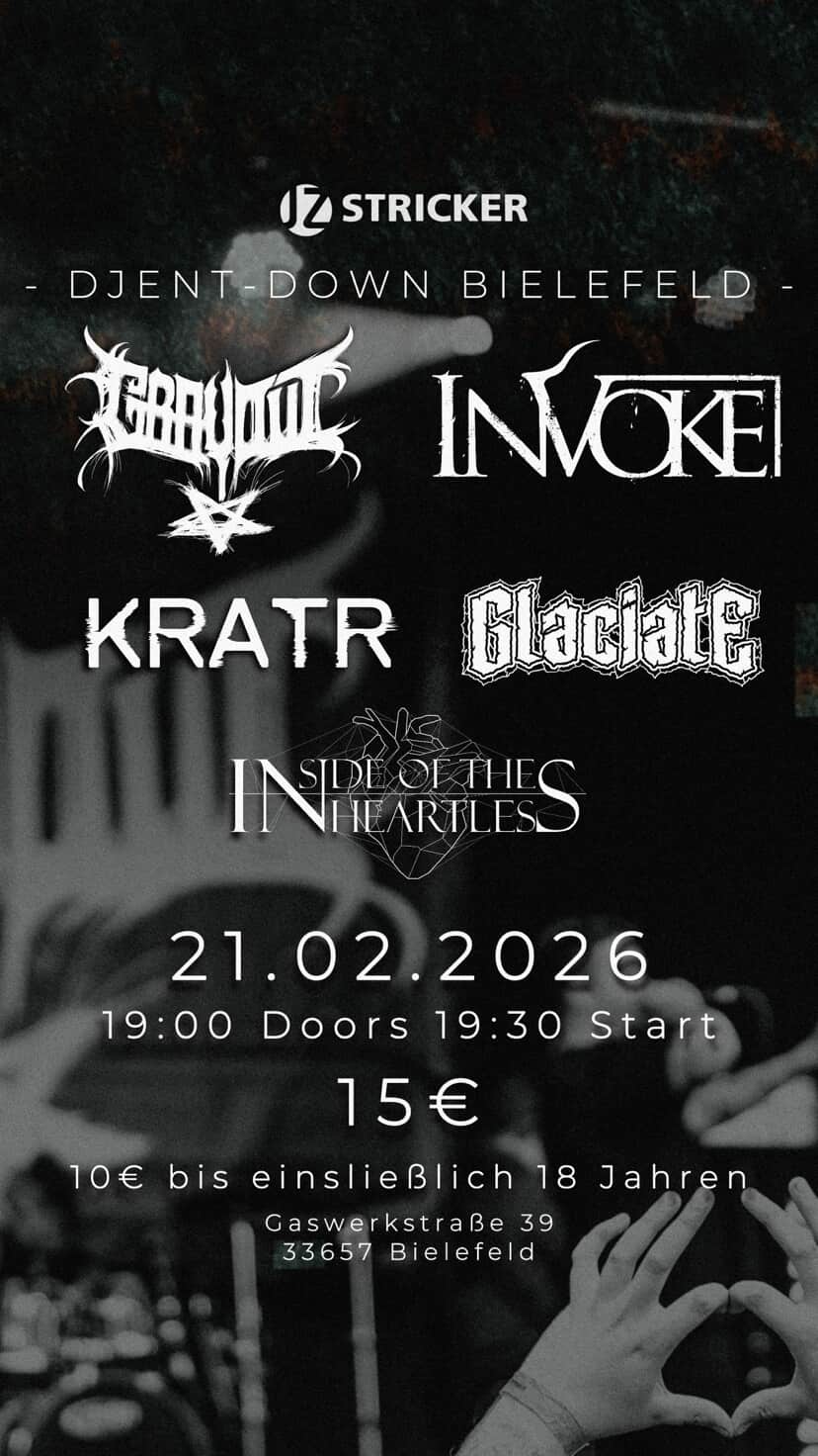 SA 21/02/26: Grayout, Invoke, Kratr, Glaciate, Inside of the Heartless Einlass: 19 Uhr, Beginn: 19:30 Uhr,, AK 15,-€