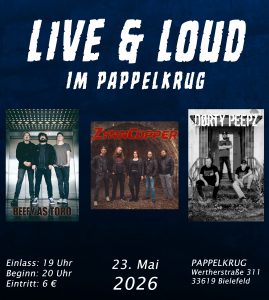 Bielefeld / Pappelkrug: LIVE & LOUD im Pappelkrug: BEEFY AS TORO; ZYNNCOPPER; DØRTY PEEPS